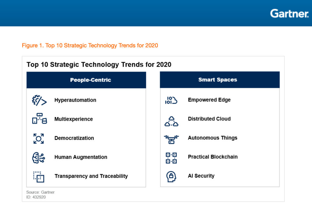 Barcelona, January 8, 2019.- Gartner Technology Consultant is a source of information, recommendations, trends and resources that should always be taken into account by an information technology professional. AndSoft traditionally uses Gartner to learn: “Top strategic technology trends for 2020”. This is a 52 page document that we have summarized in 8 pages for two articles. In any case, we provide the web link to be able to print the entire document. In this first part, Gartner tells us about: Hyperautomation, Multiexperience, Democratization, Human Augmentation, Transparency and Traceability.