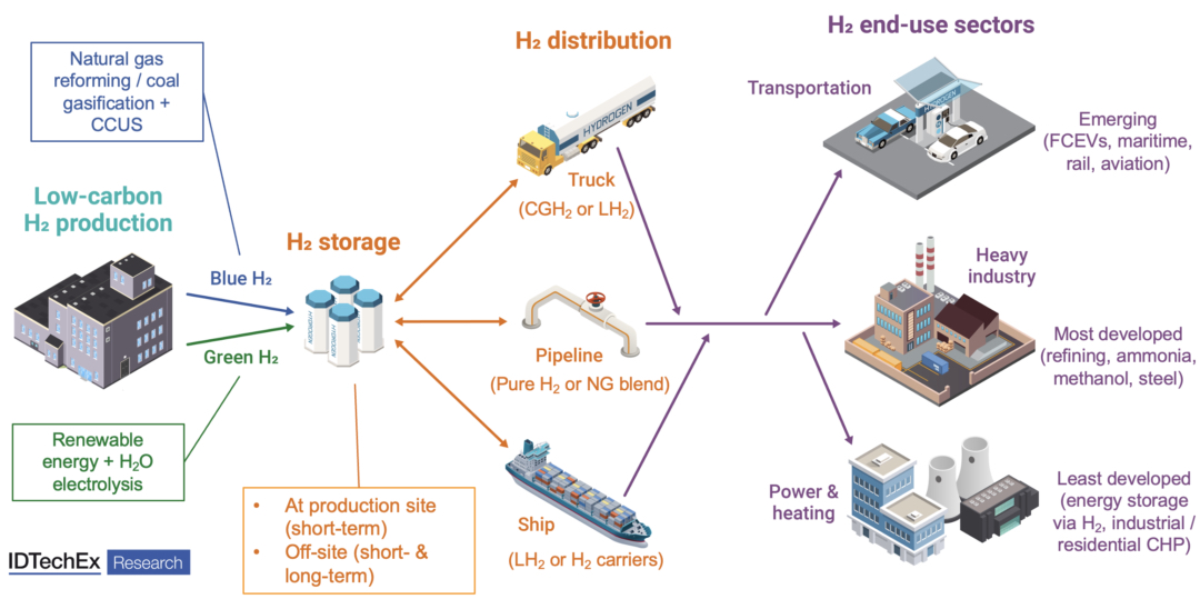 Logistics and transportation providers have sharpened their interest in hydrogen fuel cells in recent months as they seek powerful and efficient ways to reduce their greenhouse gas emissions, but a new study from the analyst firm IDTechEx shows that scant attention has been paid to the “midstream infrastructure” needed to store and transport hydrogen gas.