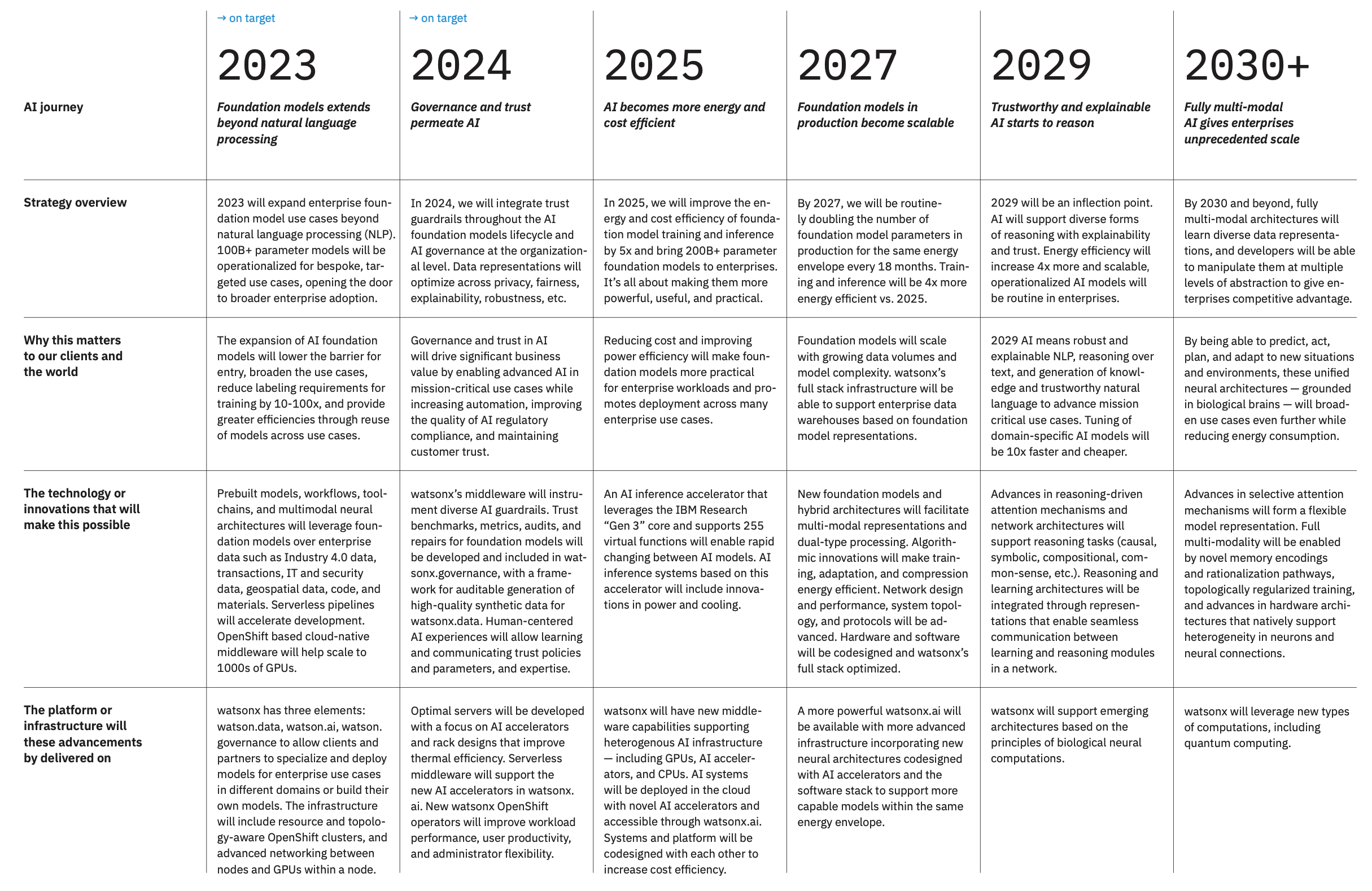 Barcelona, February 1, 2024.- IBM’s vision on the evolution of AI is, without a doubt, a document to consult and see what can be adapted in your company: “Large-scale self-supervised neural networks, i.e., foundation models, multiply the productivity and the multi-modal capabilities of AI. More general forms of AI emerge to support reasoning and common-sense knowledge”: