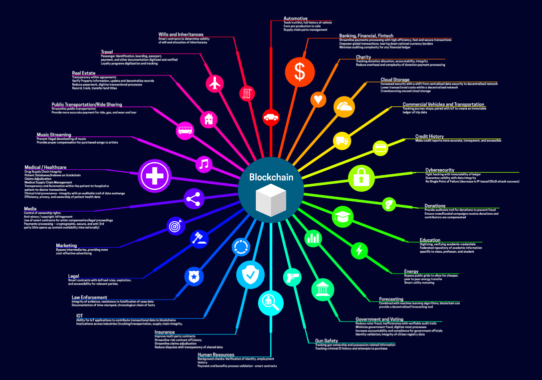 It provides an architecture that allows us to trust on a decentralized system (Internet or Web) rather than trusting any actor within it. It is a ledger that is shared between multiple entities that everyone can inspect, but not any single user can control it. This also eliminates the middleman in the whole transaction process. Since the privacy of the Blockchain is maintained by high-end cryptographic hash functions and public-key cryptography, it offers enhanced transparency and fairness while also saving businesses time and money. Eversince Satoshi Nakamoto had published his paper on Blockchain with the implementation of Bitcoin, this technology has been through massive updates that resulted in numerous applications of Blockchain. Some of these are: