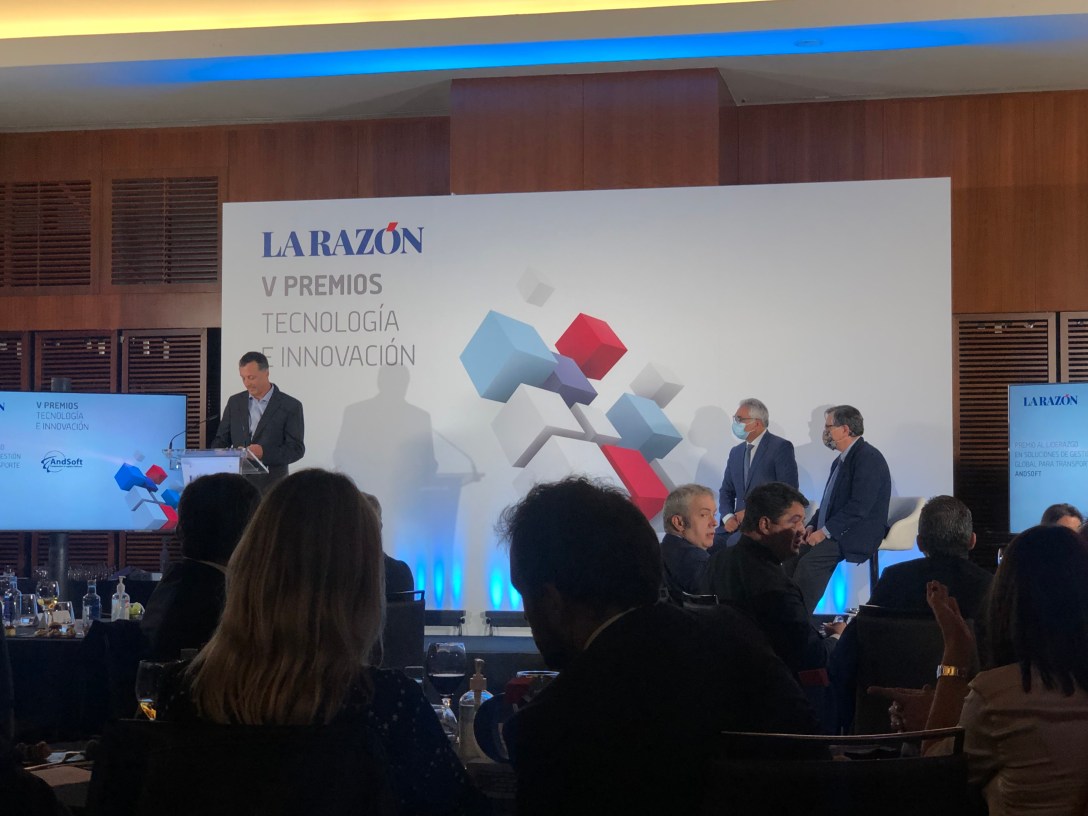 Barcelona, november 2, 2021.- AndSoft, a European company manufacturer of software for transport and logistics, received the Award for global management leadership for transport during the ceremony of the V Awards of Technology and Innovation of the newspaper La Razón, this past October 27 at the Hotel Eurostars Madrid Tower.